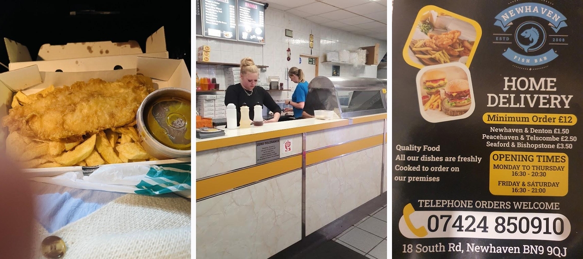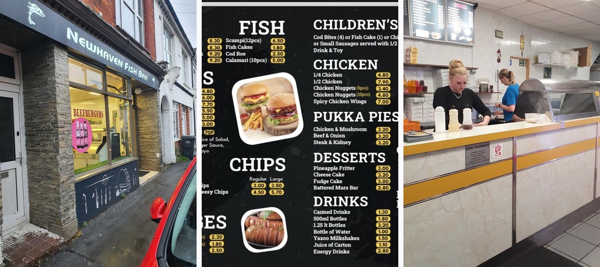 Very friendly and polite staff ★★★★★ I popped in yesterday for Sav and chips at all most closing time i enjoy eating my sav and chips good size portion of chips ★★★★★ Newhaven Fish Bar Also Deliver To Peacehaven For A Extra £2.00 Charge 👍 I Have Taken Some Pictures Below Including The Menu. I Hope This Is Helpful !!